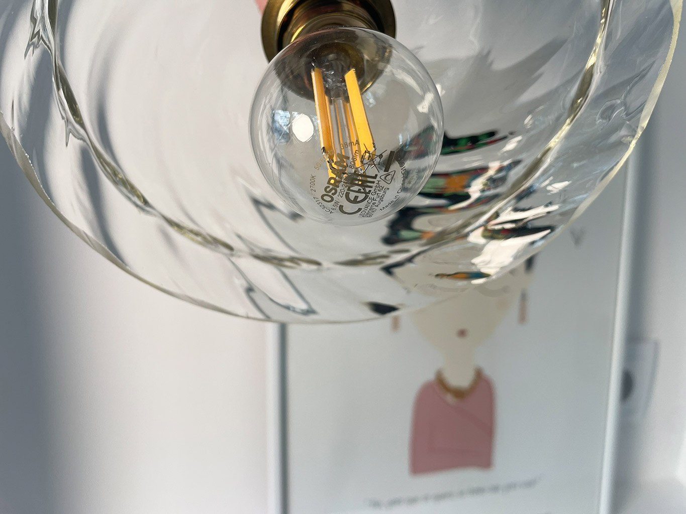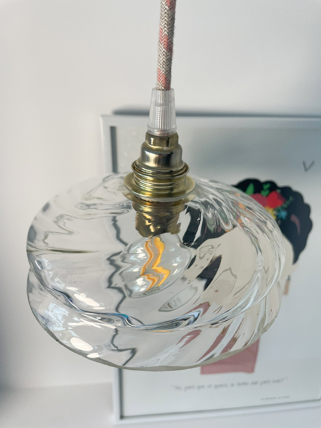 Cada espiral, obtida através de um trabalho minucioso com vidro em fusão, reflete a luz de forma única. Este acabamento confere à Cloé uma estética dinâmica e intemporal, que atrai o olhar ao mesmo tempo que se integra em todos os estilos de decoração – do vintage ao contemporâneo.