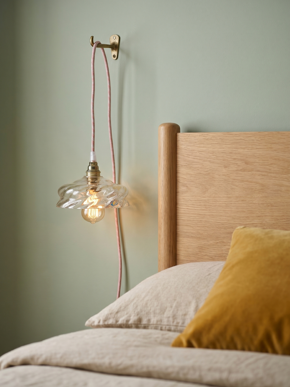 - Materiais: vidro torcido, latão, cabo de algodão redondo