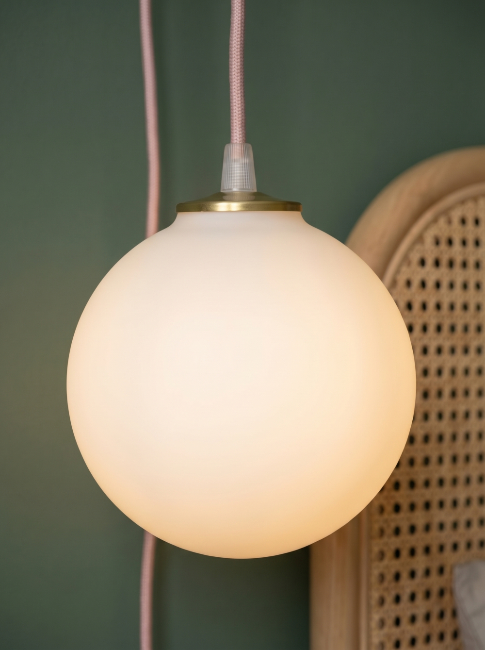 A pequena Louna em vidro pode ser delicadamente colocada numa mesa de cabeceira ou suspensa no teto como uma pequena suspensão, graças ao seu cabo de 90 cm. Precisa de outro comprimento? Estão disponíveis 9 opções sob pedido – não hesite em contactar-nos.